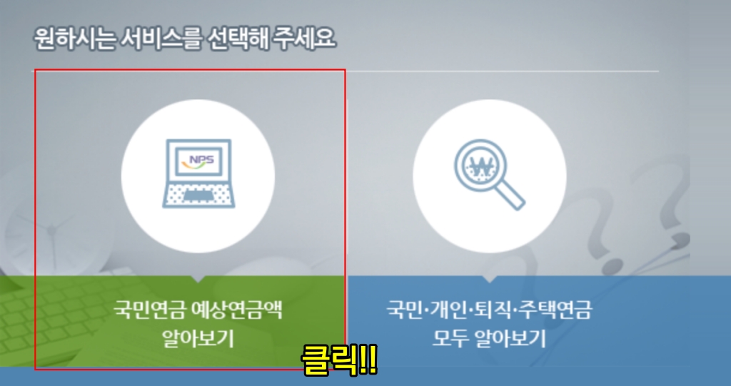 그러면 위와 같은 사이트가 출력됩니다. 빨간색 영역을 클릭하면 최종적으로 본인이 지금까지 납부한 국민연금 납부 금액 기준으로 예상수령액을 조회해 볼 수 있습니다. 근데 굳이 왜 이렇게 국민연금 예상수령액을 복잡하게 이리저리 옮겨 다니면서 볼 수 있도록 해 놓은 건지 아직도 알 수 없습니다. 😂