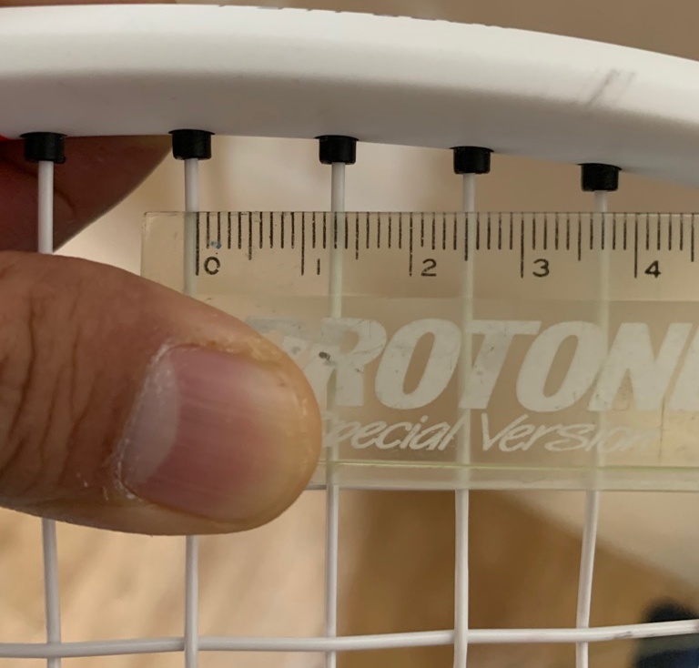 실제로 자로 측정해 보니 약 0.3Cm 차이가 있었습니다. 아무래도 스트링 사이의 간격이 넓으면 스트링의 스냅백 효과가 극대화 되기 때문에 스핀에 더 유리한 것이 사실입니다. 덴스패턴 라켓을 한 동안 사용하다 오픈패턴 라켓으로 돌아와서 그렇게 느끼는 부분일 수도 있지만 확실히 짧은 공과 낮게 깔려들어오는 슬라이스 공에 대해서도 충분한 네트 위 마진을 확보하면서 강력한 스트로크가 구사되는 것 같습니다.