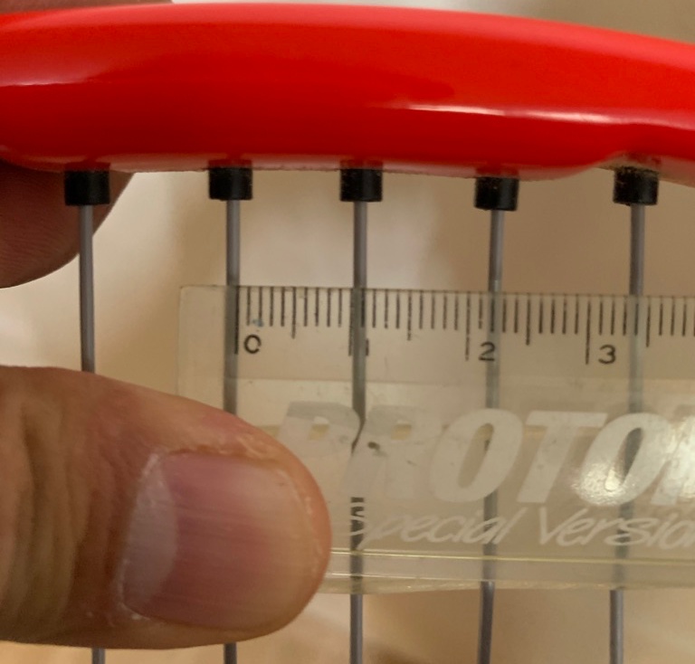 두번째 특징은 " FSI Power Technology " 입니다. 크로스 스트링의 사이 간격이 넓어 스핀과 파워에 이점이 있다고 설명하고 있는데요, 그래서 제가 직접 윌슨 RF97 오토그래프와 크로스 스트르링의 간격을 측정해 보았습니다.
